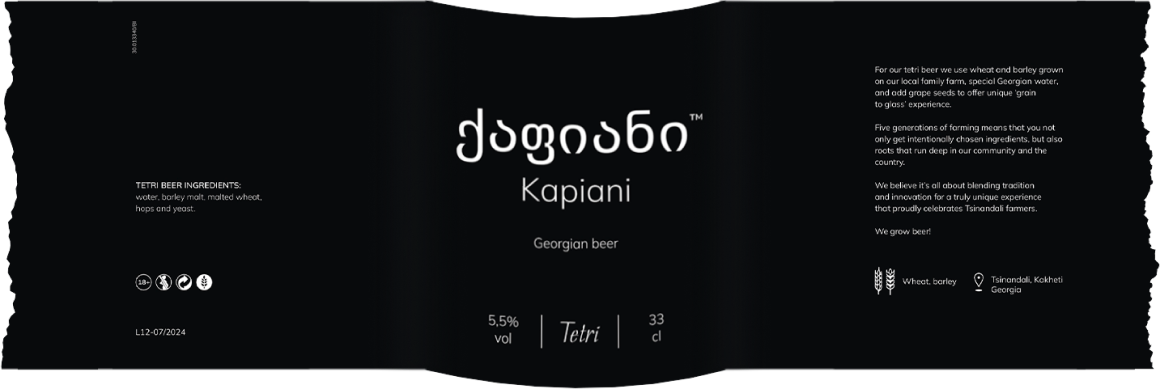 For our tetri beer we use wheat and barley grown on our local family farm, special Georgian water, and add grape seeds to offer unique 'grain to glass' experience.